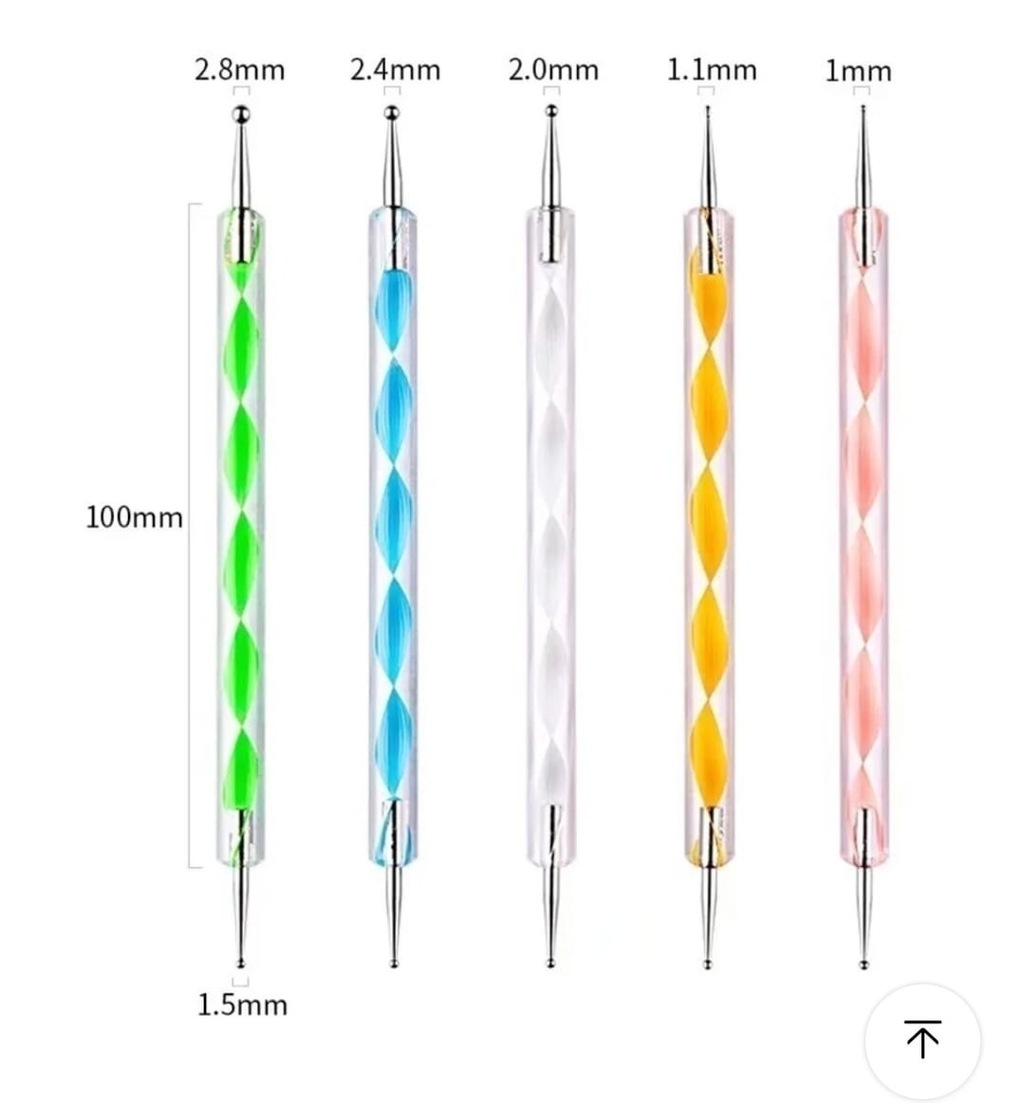 Kit com 5 boleadores de manicure que serve para arte em pontilhismo.